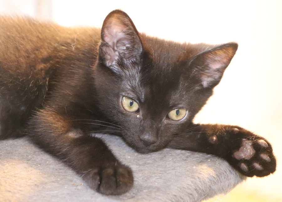 This adorable little black kitten will capture your heart with her sweet personality. With her sleek, pure black coat and short, shiny fur, she’s a stunning little lady who’s as curious as she is playful. Artemis is still a little shy, but don’t let that fool you—once she’s comfortable, she’s full of love and affection, ready to charm you with her playful nature.
