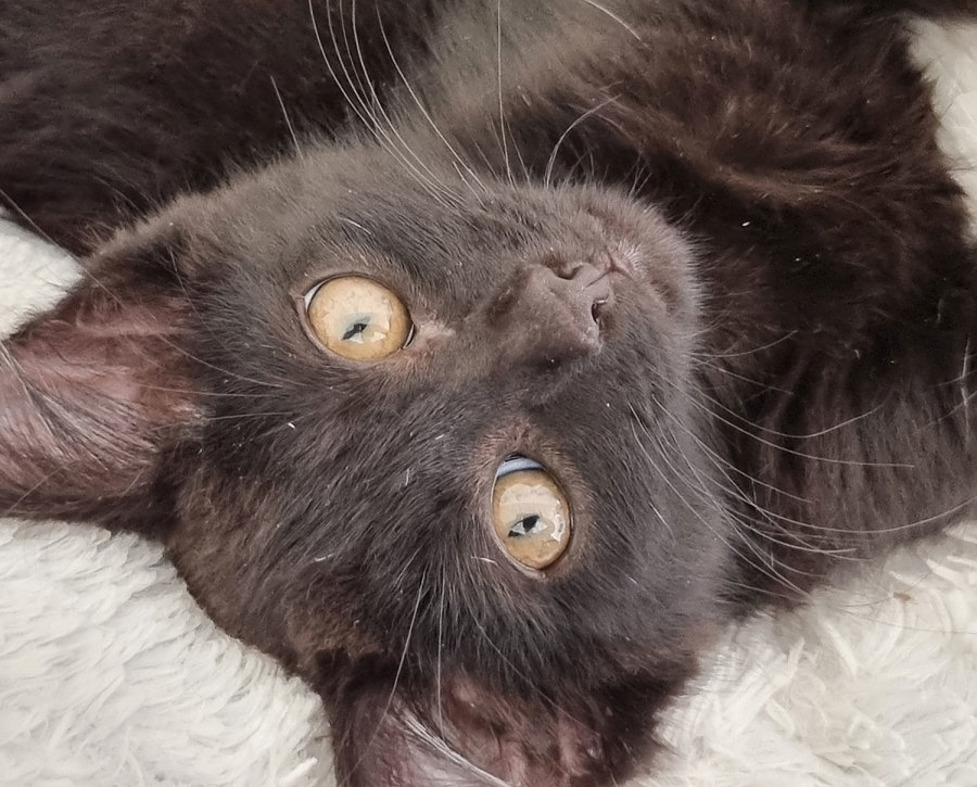 Meet Ziggy, the 13-week-old black kinky-tailed kitten with a personality as big as his heart! Ziggy is an affectionate and playful little guy who has a way of making everyone he meets fall in love with him. The first family to meet him will snap him up - he is irresistible.