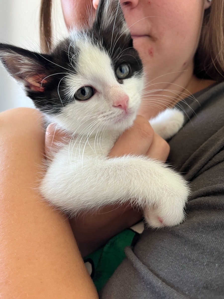 Meet Neo, the cutest little social butterfly you'll ever encounter. At just 10 weeks old, Neo is already a curious and lively kitten with a natural penchant for making friends. If you're looking for companionship and a sweet bundle of joy who loves to be around people, Neo is your guy.