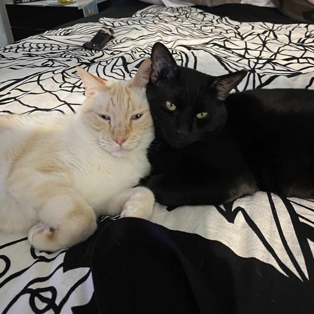 As you can see by the photos they are usually intertwined in some manner when sleeping 😻. They have always been indoor cats.
