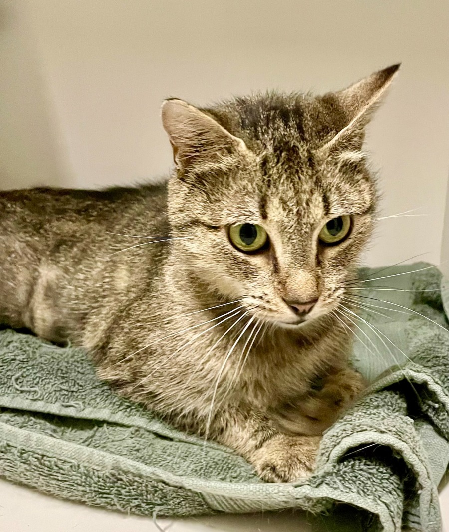 Missy is a beautiful 1 year old tabby cat who has been through a lot but has come out stronger than ever. As a mum of five kittens, Missy faced a tough start when she developed an infection that required emergency surgery, leaving her unable to care for her little ones. Thanks to loving bottle feeders and a surrogate mum, some of her kittens survived, but Missy’s journey hasn’t been easy. Now fully recovered, she’s ready to leave her past behind and find a quiet, loving home where she can shine.