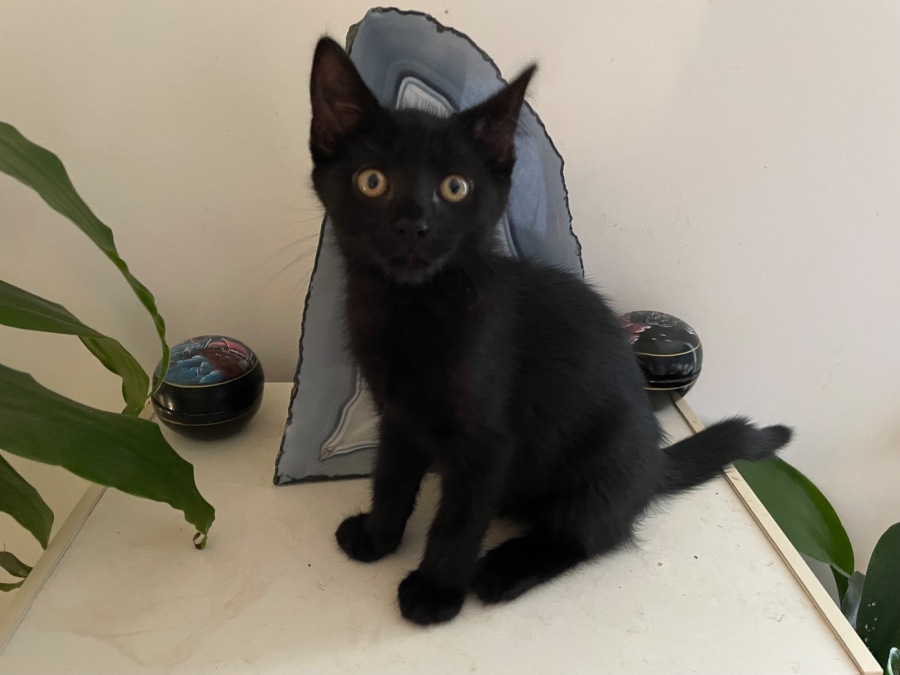 Pearl is the epitome of cuteness and charm. This playful, loving, and cuddly kitten loves to explore and play, but also adores snuggling up for cozy cuddles. With her shiny black coat and bright, curious eyes, she will sure to capture your heart.