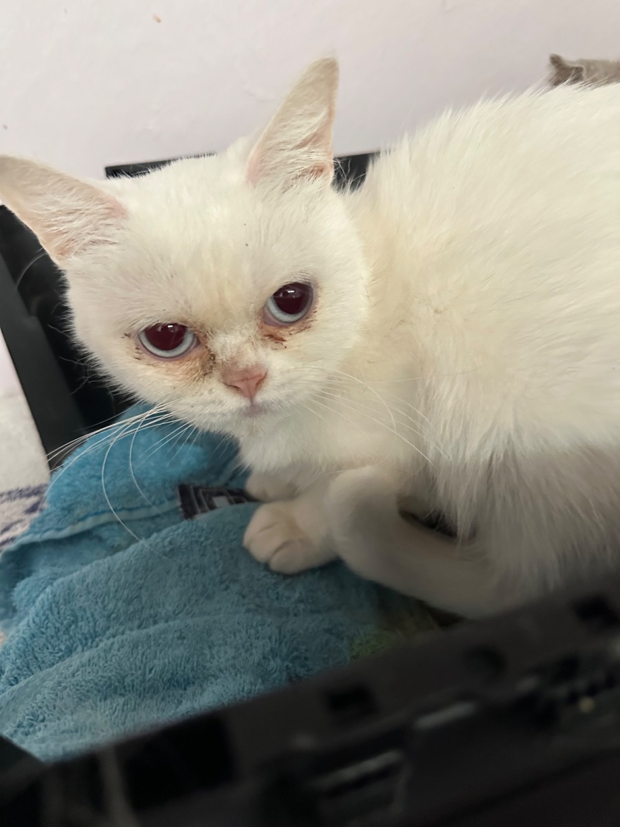 Lyra is a pure white exotic short hair .