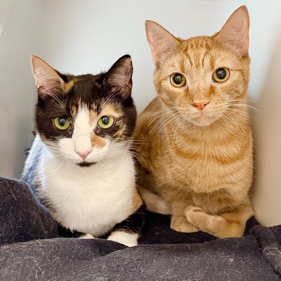 Margaret and Hawkeye are a sweet and shy pair who have been through a lot together and are inseparable. Both cats are timid by nature, especially in new environments or around unfamiliar people, but they are slowly learning to trust and open up.