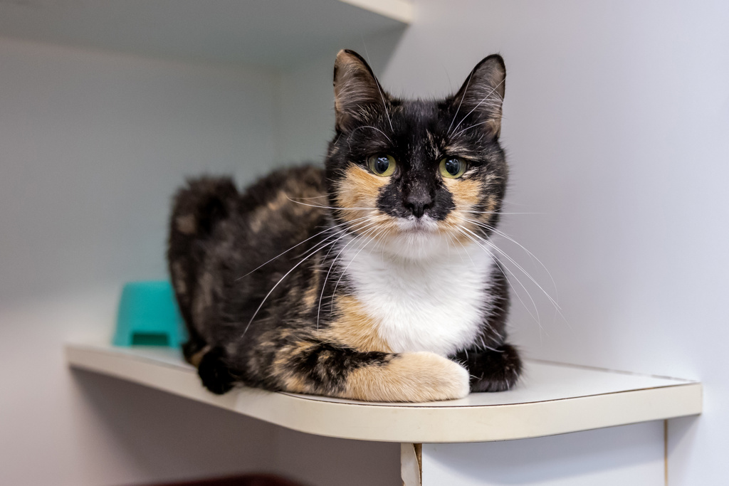 This stunning tortoiseshell beauty is Pretzel, and let me tell you - her name suits her perfectly. Like a good pretzel, she's a little twisty at first (unsure about new things) but once you get to know her, she's all warm, soft, and irresistible.