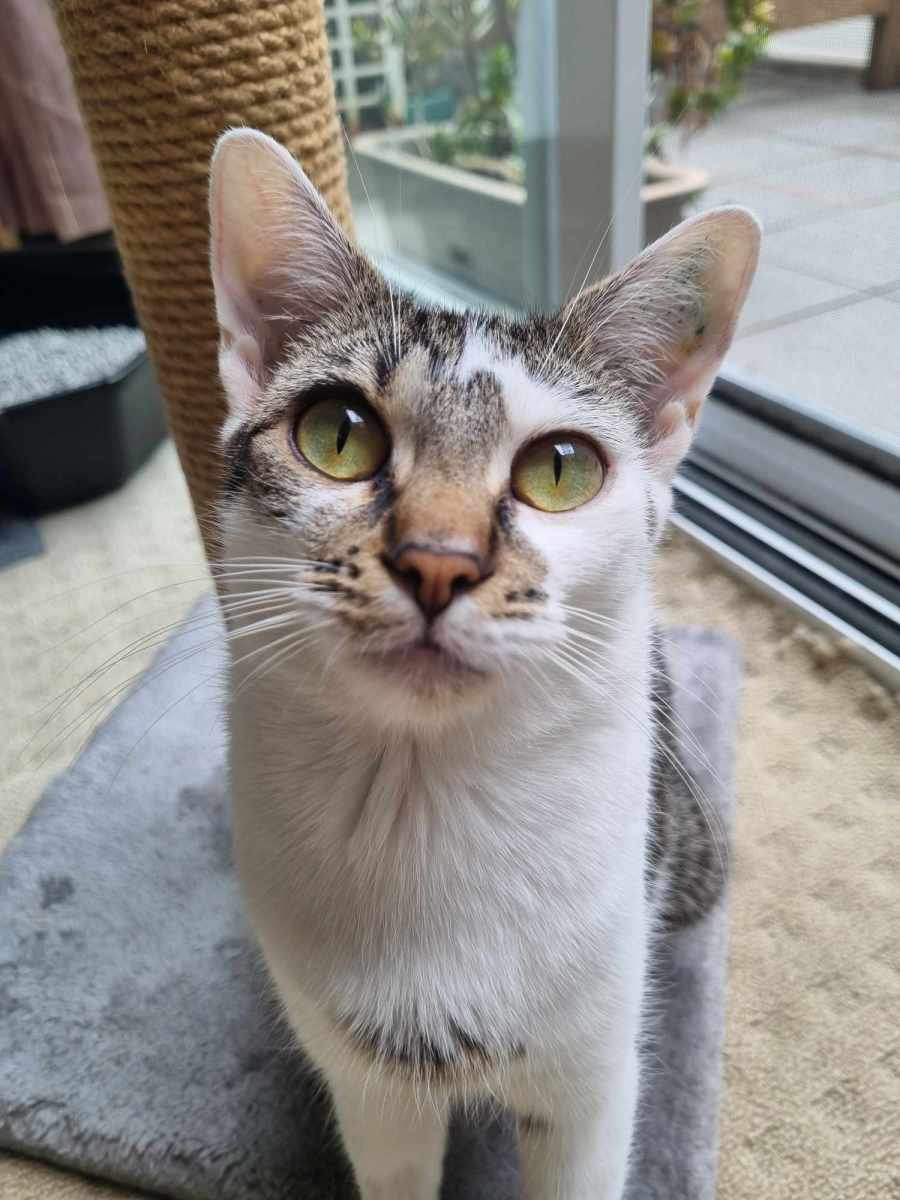 Scuba is a sweet and shy cat who is gradually coming out of her shell.