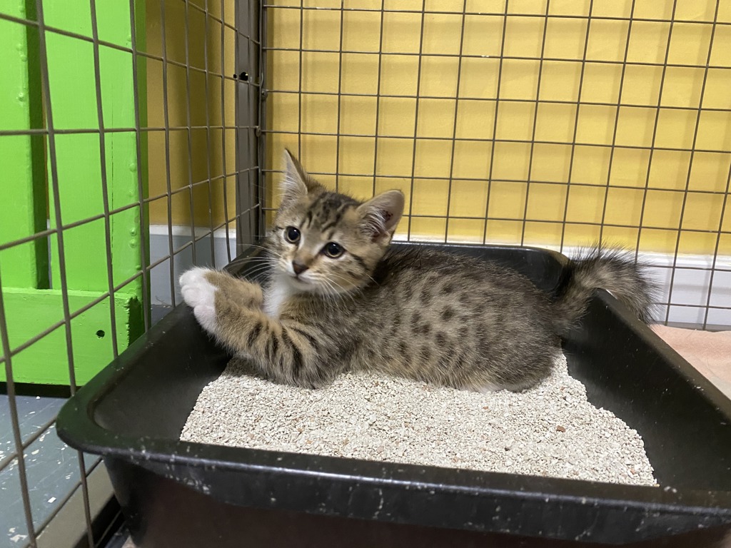 And don't forget-Chandler loves his food! He's always ready for mealtime and never turns down a tasty treat. If you're looking for a kitten who will not only play but also settle down for a peaceful nap by your side, Chandler is the perfect match.