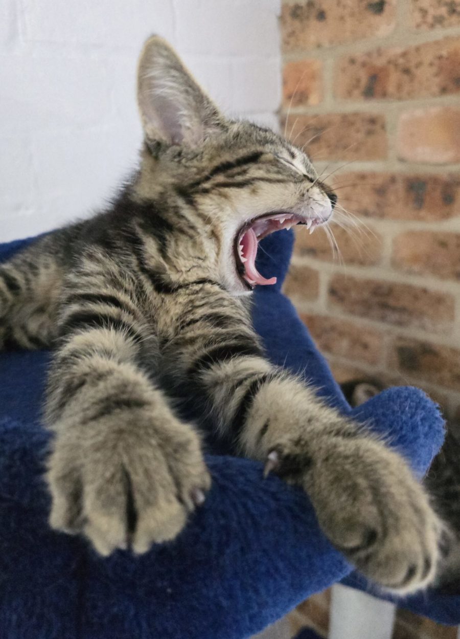 I'm super confident with the other cats and kittens who live in my foster home. I'm so confident that I might annoy an older dog or cat, so any pets over 10 years would probably not appreciate my shaningans. I love kids and am gentle and interactive. I love chasing a feather on a stick or batting around a ball, I love a good empty cardboard box or play tunnel to hide in and pounce out of when you walk past.
