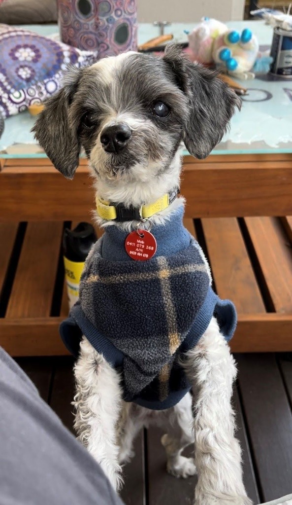 Layla is the smaller, older one of this Odd Couple. She weighs in at just under 5kg, is mostly blind and deaf, and has 3 teeth left, but the vet has otherwise given her a clean bill of health. She sometimes scampers about like a puppy, but she does rely heavily on Lola for support/companionship. Layla has taken quite a liking to the foster carer’s son in law.