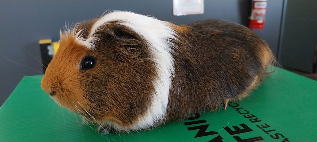 Diet & Care: Gazza requires a well-balanced diet that includes fresh hay, vegetables, and a bit of fruit for a treat. He thrives with regular enrichment like tunnels, chew toys, and things to explore. A healthy and stimulating environment will keep him in tip-top piggy fitness!