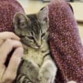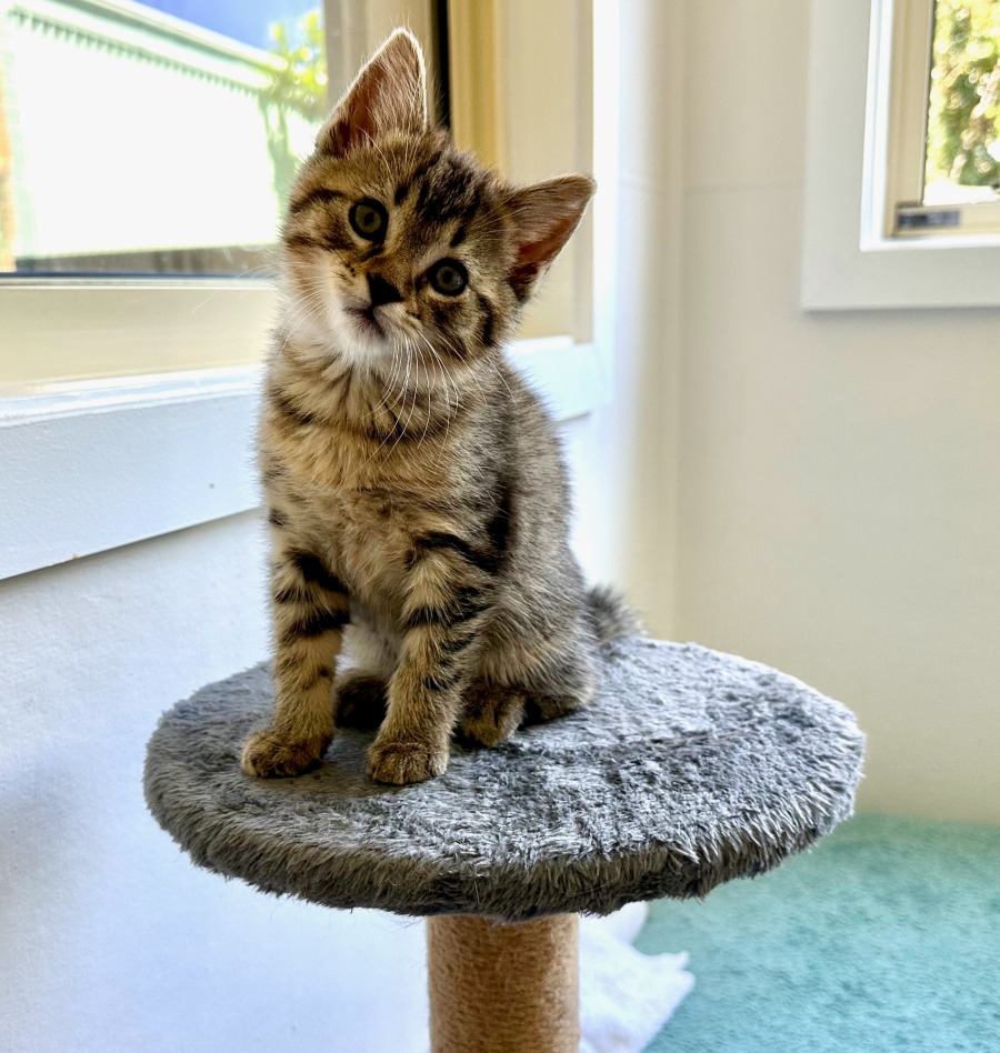 Chrissy is an adorable 12-week-old tabby kitten with a heart full of love and a playful spirit that’s impossible to resist! She’s a curious little explorer who loves to chase toys, pounce around, and engage in all kinds of kitten mischief. But when the fun winds down, Chrissy is a cuddler at heart. She’ll happily curl up on your lap for a cozy nap or snuggle with you while you relax.