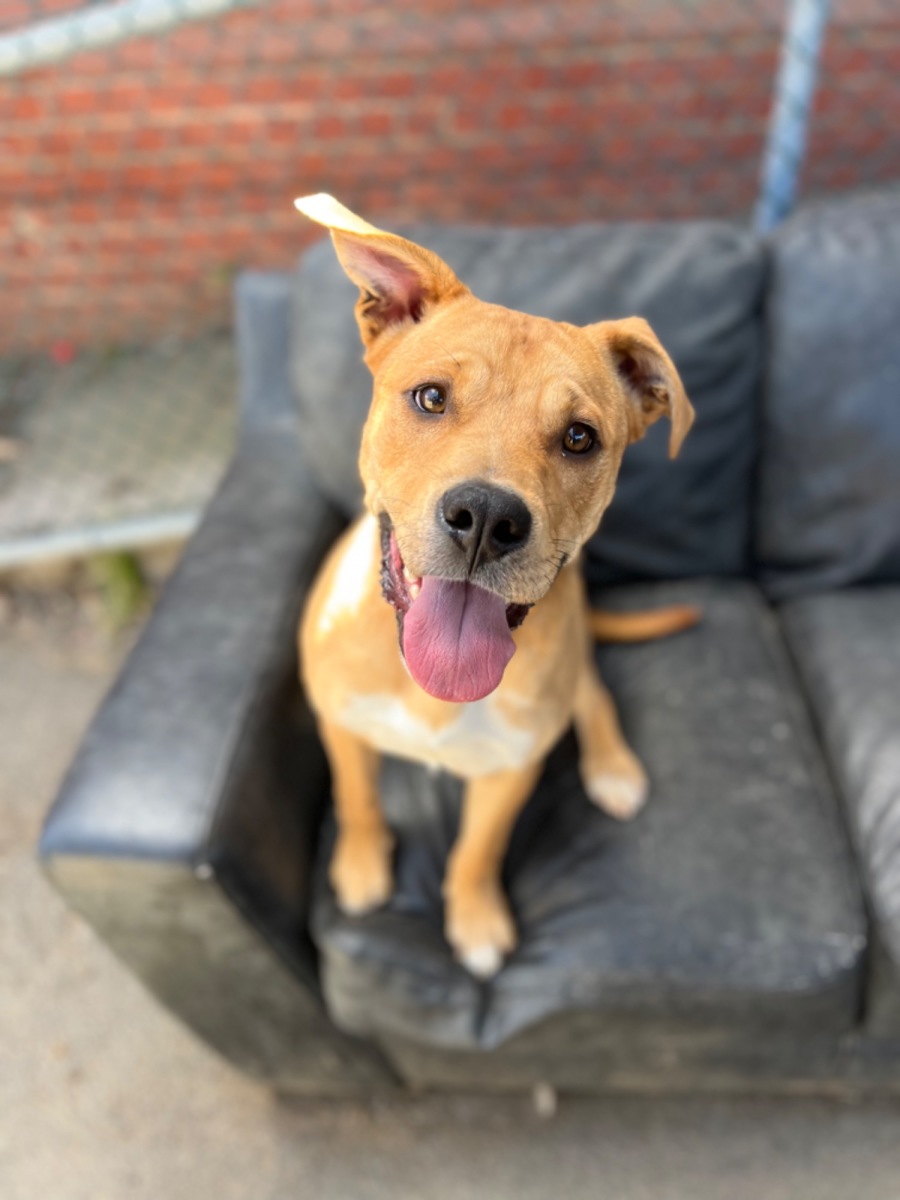 Meet Kimba, a delightful 10-month-old female staffy mix whose sweet nature is sure to win your heart. With her gorgeous looks and friendly demeanor, Kimba is eager to find a lively and loving family to welcome her into their lives. Kimba is the perfect companion for those who enjoy a dynamic lifestyle, cherishing every moment of play and companionship. At the same time, she is versatile and adaptable, making her just as content to lounge on the couch for lazy afternoons of relaxation and cuddles.