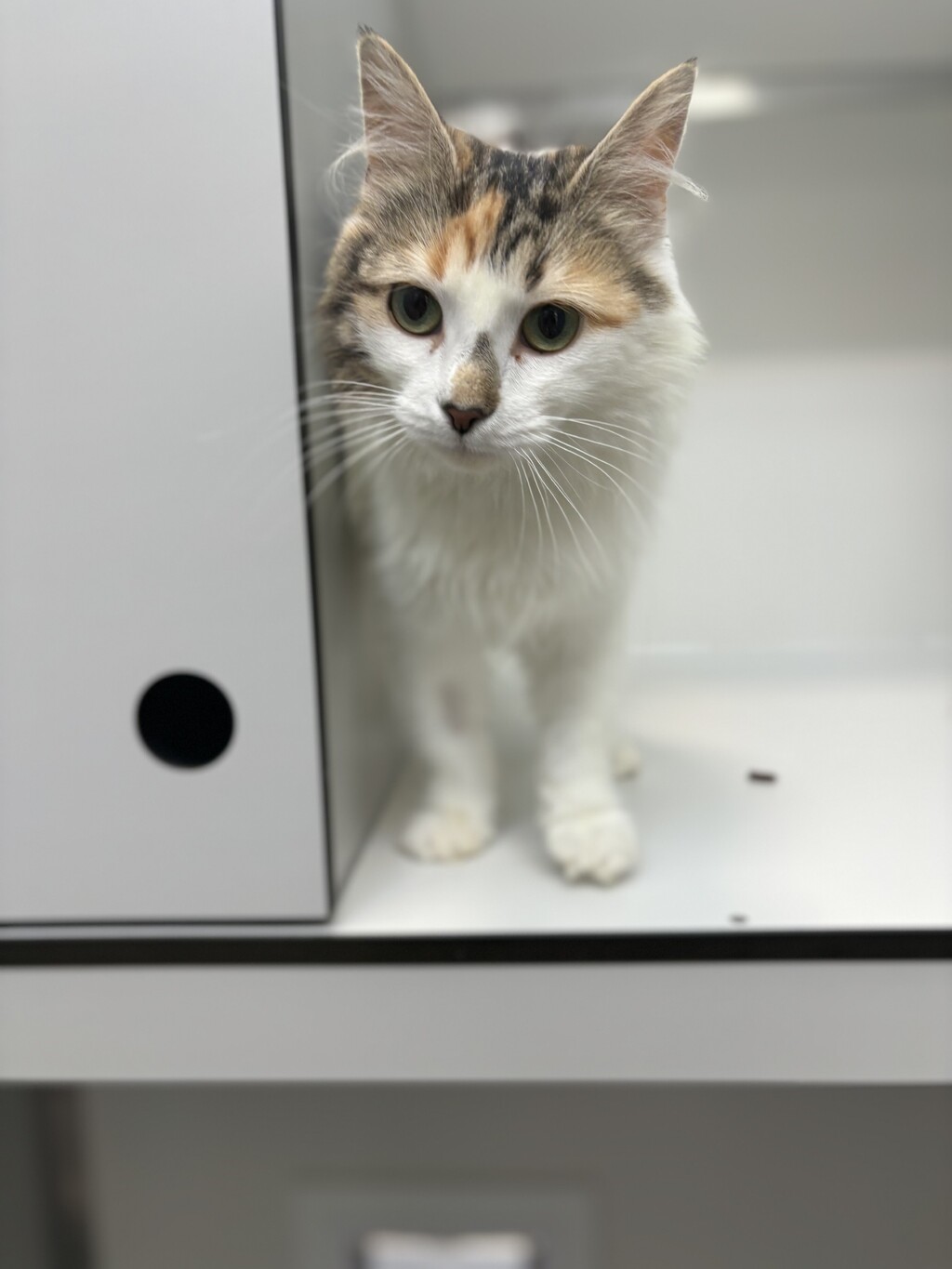 Meet Paisley, a sweet torbie cat with a beautiful mix of orange, brown, and black fur. While she's a bit shy at first, Paisley quickly comes out of her shell once she feels safe and secure. She loves to curl up in cozy spots and will happily purr when she's content. Paisley is a sensitive soul and can be scared by loud noises, so a calm and quiet environment is ideal for her. She would do best in a home with a friendly feline companion who can offer her the reassurance and comfort she needs to truly thrive. If you're looking for a gentle, affectionate cat who will take her time to build trust, Paisley is the perfect match. With a little patience and the right friend, Paisley will grow into a loving, loyal companion.