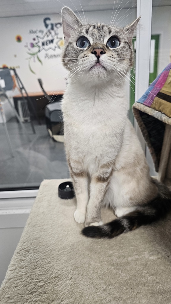 Still young and curious, Cheesecake is always ready to explore her environment and will happily fill your home with energy and affection. She's looking for a family who can offer her love and care, along with the patience to help her adjust to new situations. In return, Cheesecake will shower you with companionship, purring, and plenty of playful moments.