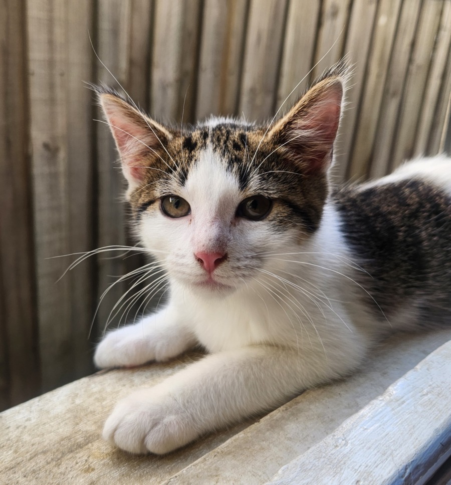 Meet Churro, an enchanting young kitten with limitless potential for love and friendship. Though initially shy, Churro has an endearing charm that will capture your heart with just a glance. He's the kind of kitten who, while gentle and quiet, reveals his playful side when hanging out with his kitty companions.