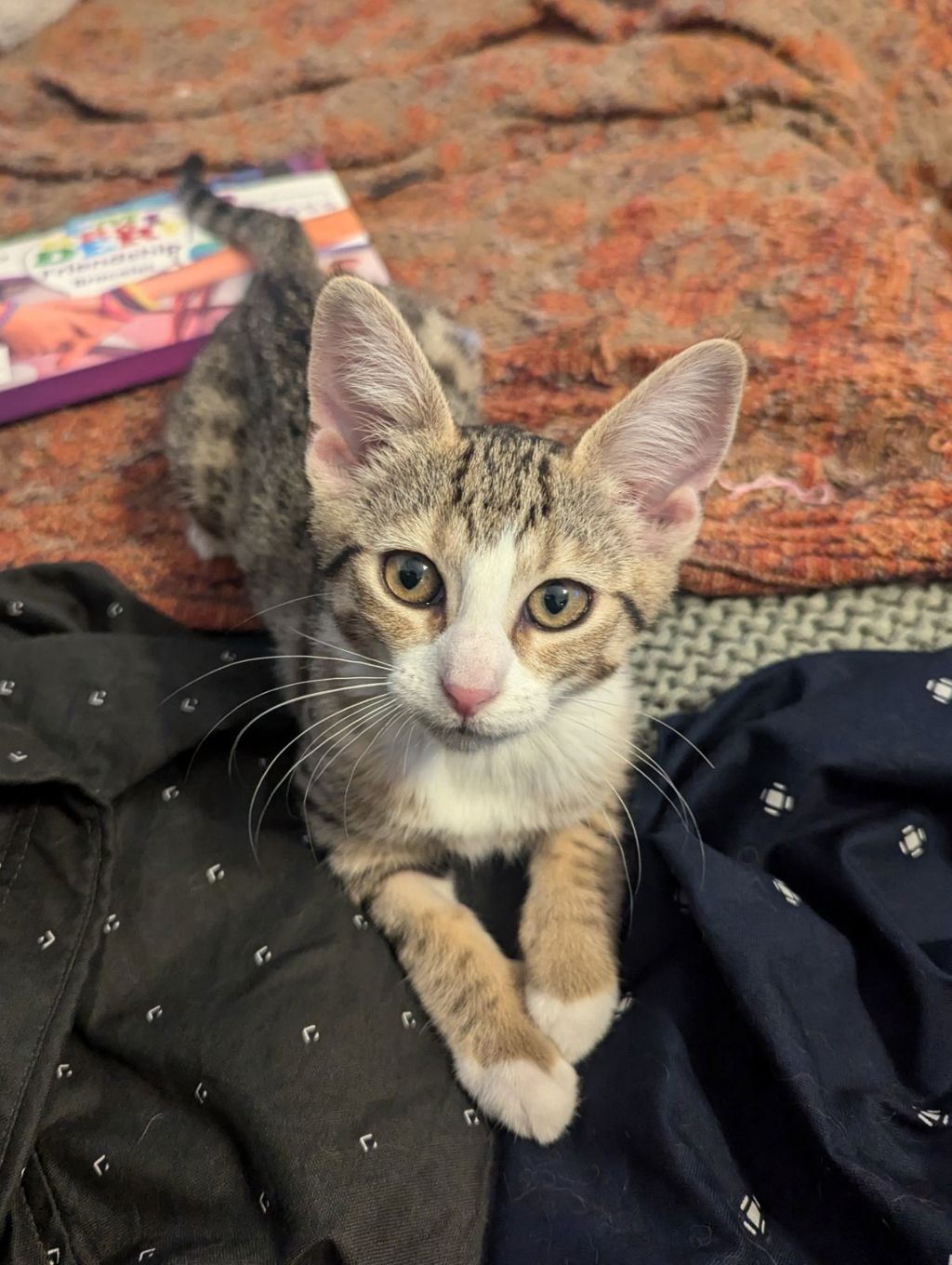 Athena is a shy but extremely sweet girl and loves a cuddle. Once she's decided you're her kind of person she'll seek you out to sit as close to (or on) you as possible. She would do well in a quiet home or one with another cat, or adopted with her brother Atlas, to help her confidence continue to grow.