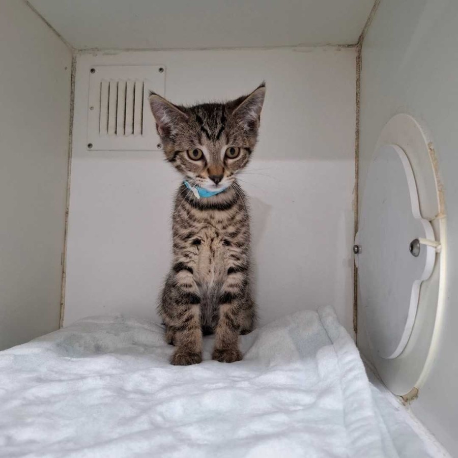 Meet Merlin (C241345), a 2-month-old male Tabby kitten with a magical personality! With his adorable striped fur and playful charm, Merlin is sure to enchant anyone he meets. This little guy is full of curiosity and energy, always ready to explore and discover new things. When he’s not busy pouncing on toys or chasing after fun, he loves to snuggle up and enjoy some quiet cuddle time with his favorite humans.