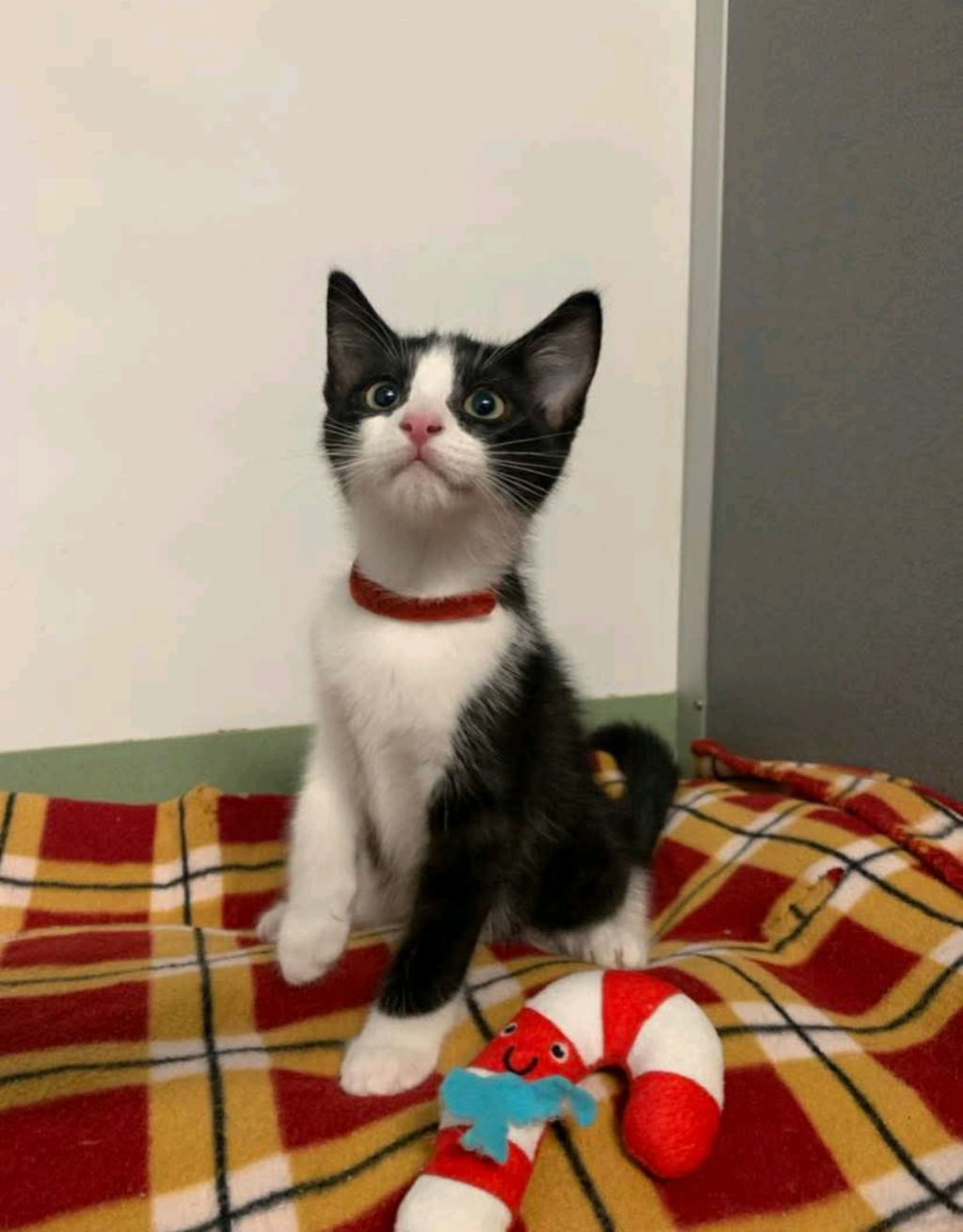 But don't be fooled by Cricket's playful demeanor, this kitten also loves a good cuddle. Cricket's sweetness is heartwarming, and the friendly nature makes Cricket a perfect companion for any family.