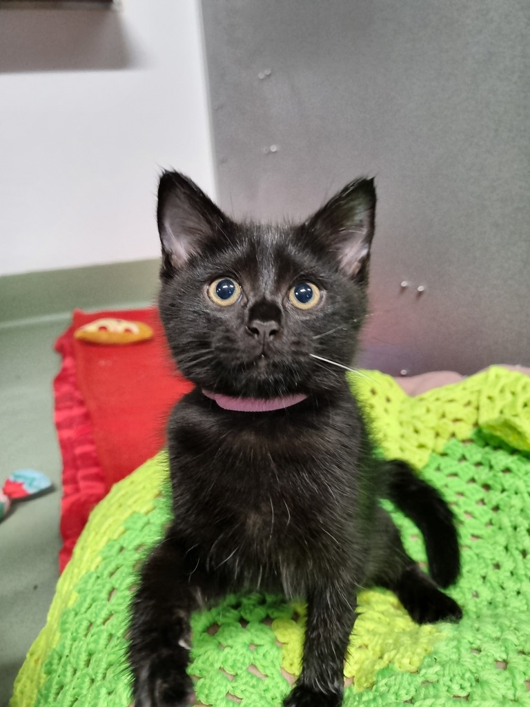 Hello, I'm Eva! I'm just a little kitten, but I've got a big personality. I'm super sweet and friendly, always ready to make new friends. I'm curious about everything around me, always on the lookout for new adventures. I can be a bit goofy at times, but that's just part of my charm. I love to play, chasing after toys or pouncing on shadows. But when playtime is over, I'm all about the cuddles. I'll curl up in your lap and purr myself to sleep. I'm just a little bundle of love, waiting for the perfect family to share it with. I'm not just a pet, I'm a companion, a friend, a source of endless entertainment and unconditional love. If you're looking for a sweet, playful, cuddly friend, I'm the kitten for you!