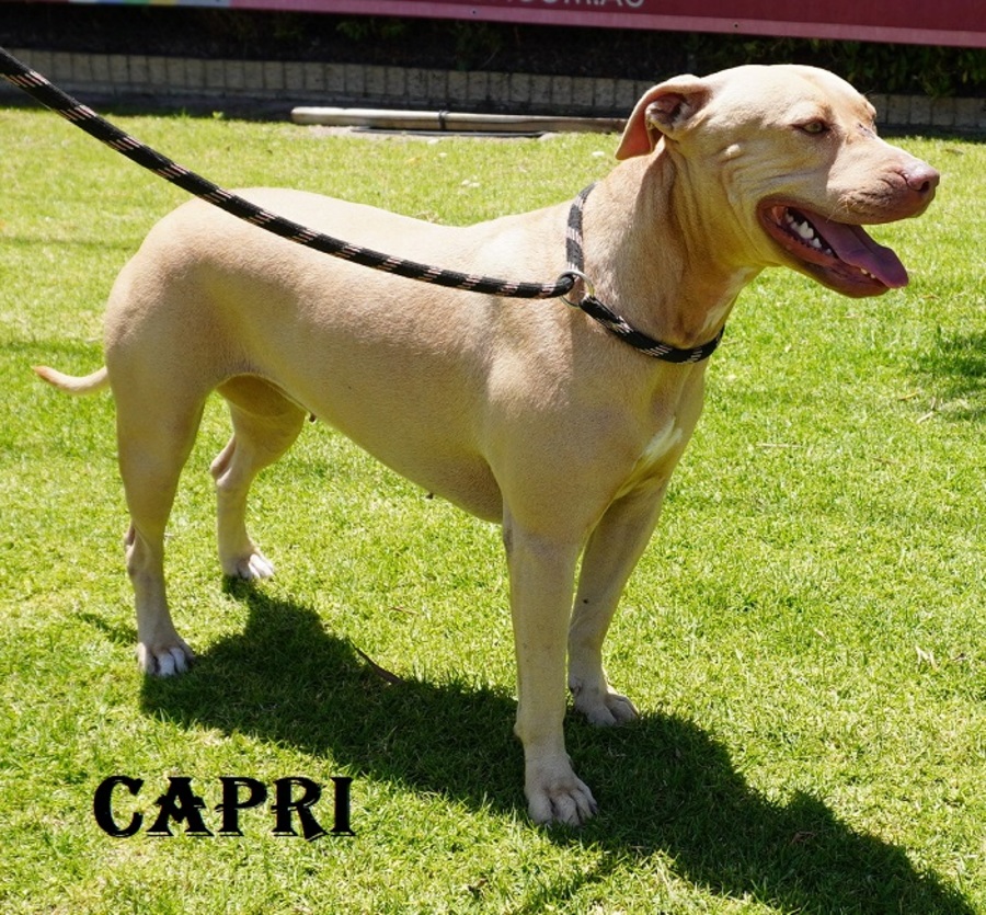 Capri is a delightful 20-month-old Am Staff with a zest for life and a heart full of love. This friendly girl thrives on attention and companionship, always ready to greet you with a wagging tail and an enthusiastic smile.