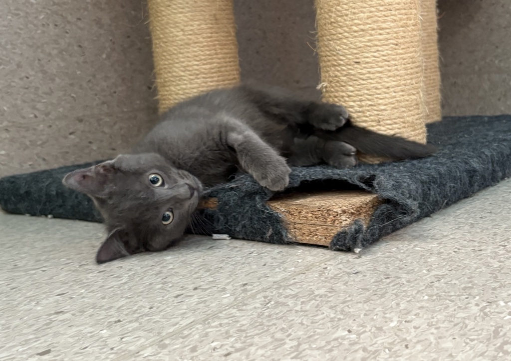 Laska is happiest when he's curled up in your lap, soaking up your love like a warm broth. This little fluff ball has energy to burn and will happily chase after toys, climb on cat trees, or zoom around the house like a tiny grey whirlwind. Laska thrives on attention and affection, he'll always come back for seconds when it comes to cuddles.