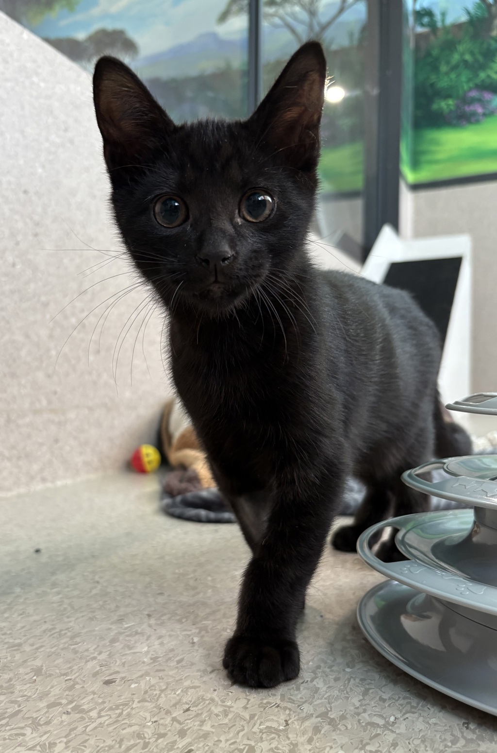 Satay might be small, but this little black kitten is seasoned with sweetness, sprinkled with sass, and served up with endless purrs. He's the kind of kitten you'll find im-paws-sible to resist!