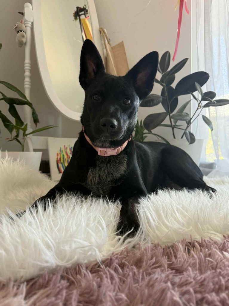 She is a velcro dog and constant attention or to be in the same room with you, she would suit a family where someone is home most of the time and does a lot of outdoor activities in afternoons or on weekends.