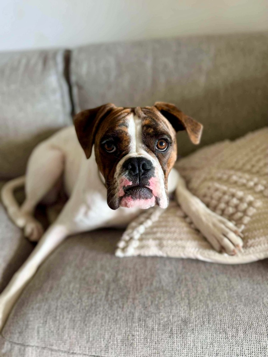 Bella is super smart and gets a little bored on her own, which leads to a bit of mischief. When sheβs with another dog, though, sheβs in her element β playing all day and then crash together. Sheβs looking for a home with another young, active male dog to keep her busy and tire her out!