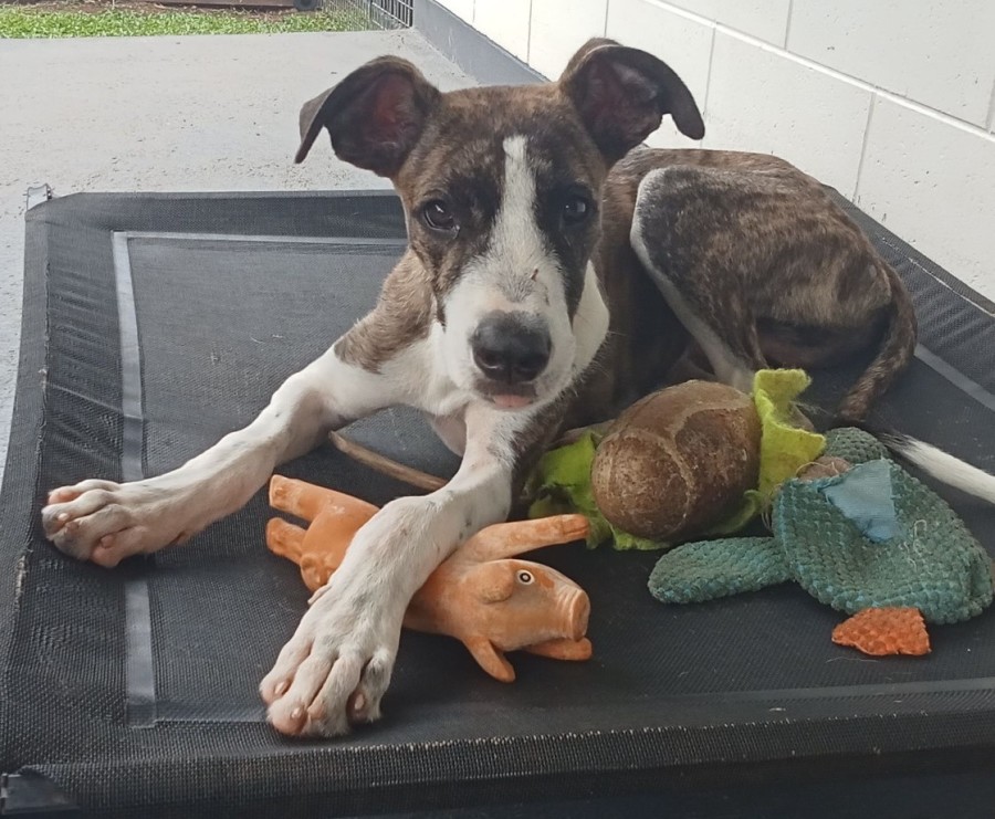 Goose, Thunda, Slinky Butt is the complete package, he is so emotionally in tune to what is going on your therapist can take a break This beautiful boy invokes happiness from all angles, he is not at all bothered by storms & will calm you during them. Thunda loves his canine & hooman companions equally so will definitely thrive in a multi canine family, he does choose times where he is completely human focused & will also grab his toys which ch he loves to hoard & will solo zoom if everyone is busy or worn out. Thunda must be a big part of your play life & family for you all to benifit from his super fun presence & ongoing training will help him be the goodest boy you ever did see. Please reach out if you are interested in this beautiful boy becoming part of your family!