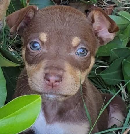 Flute is a staffy/kelpie mix who should grow into a medium sized dog when full grown.