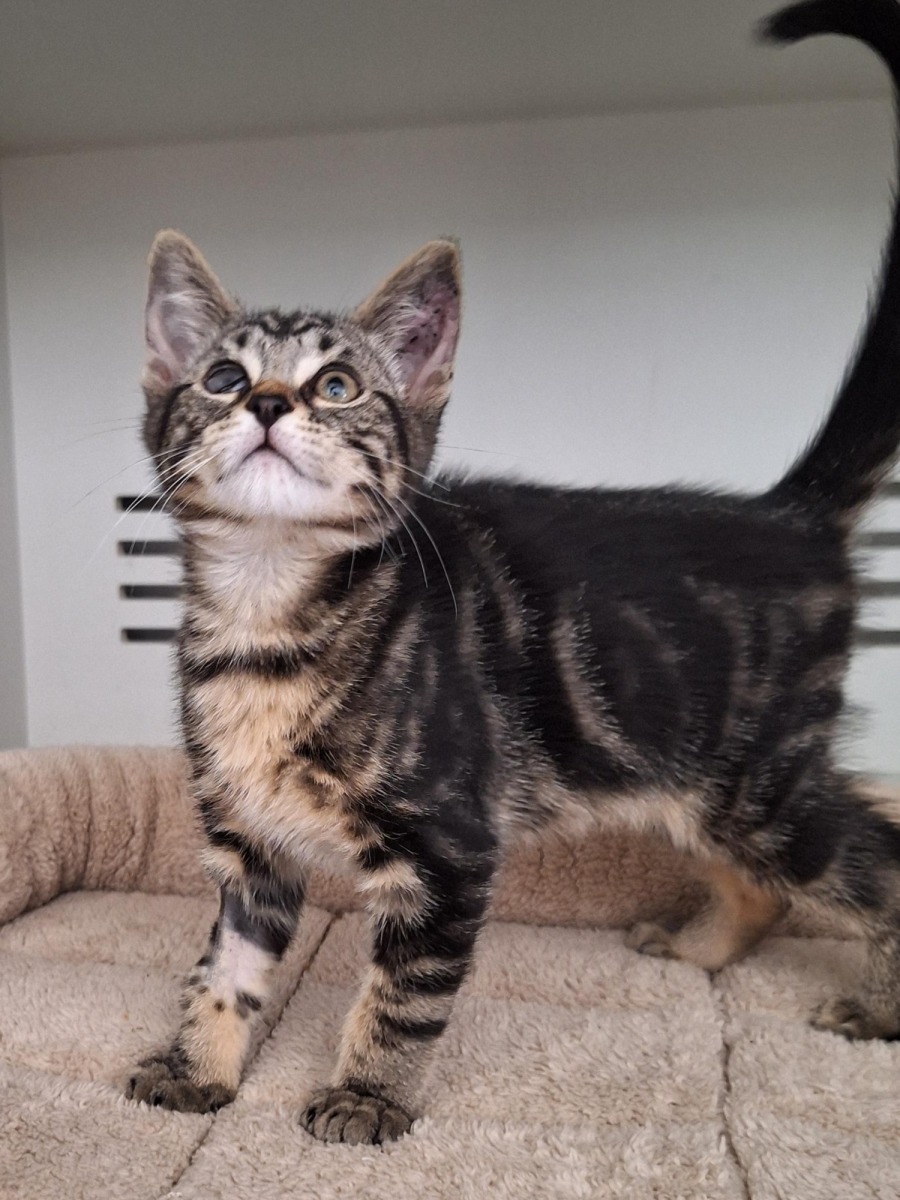 While he would thrive with a kitten friend, he’d also be perfectly happy as the only cat in a home as long as he receives lots of love and attention.