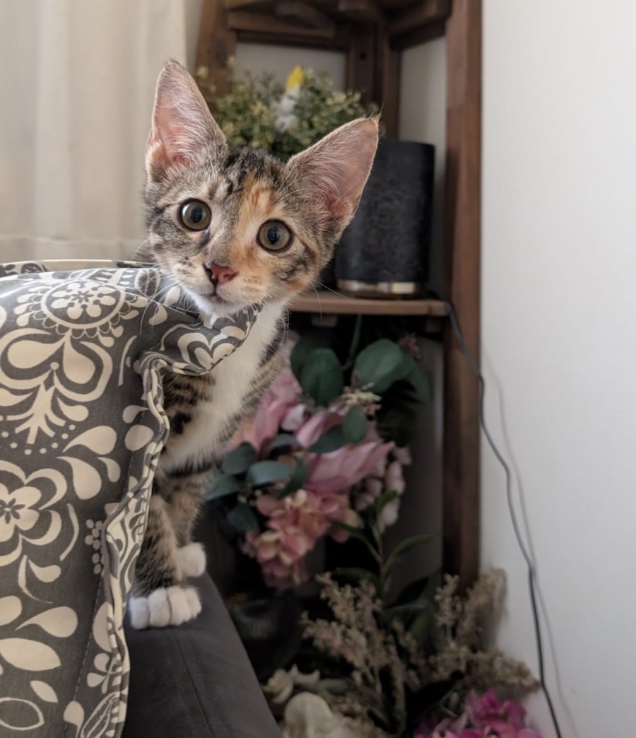 She is currently in foster with her brother and another kitty – which she absolutely loves! She’d be looking for a new forever home with another kitty, or her brother Purrseidon.