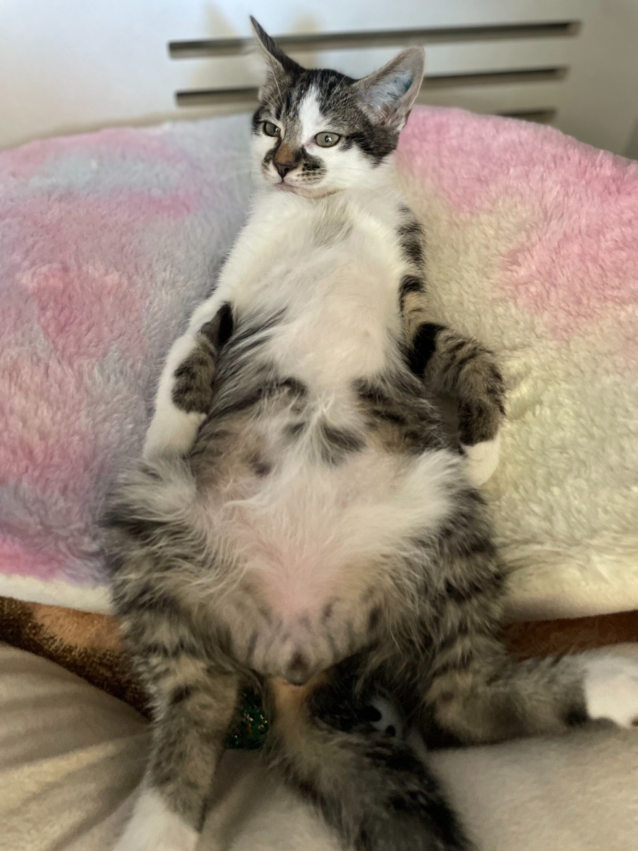 He’s super affectionate, energetic, playful and cheeky! We’d recommend with another kitty friend to help burn off all that energy – otherwise lots of toys, stimulation and play time!