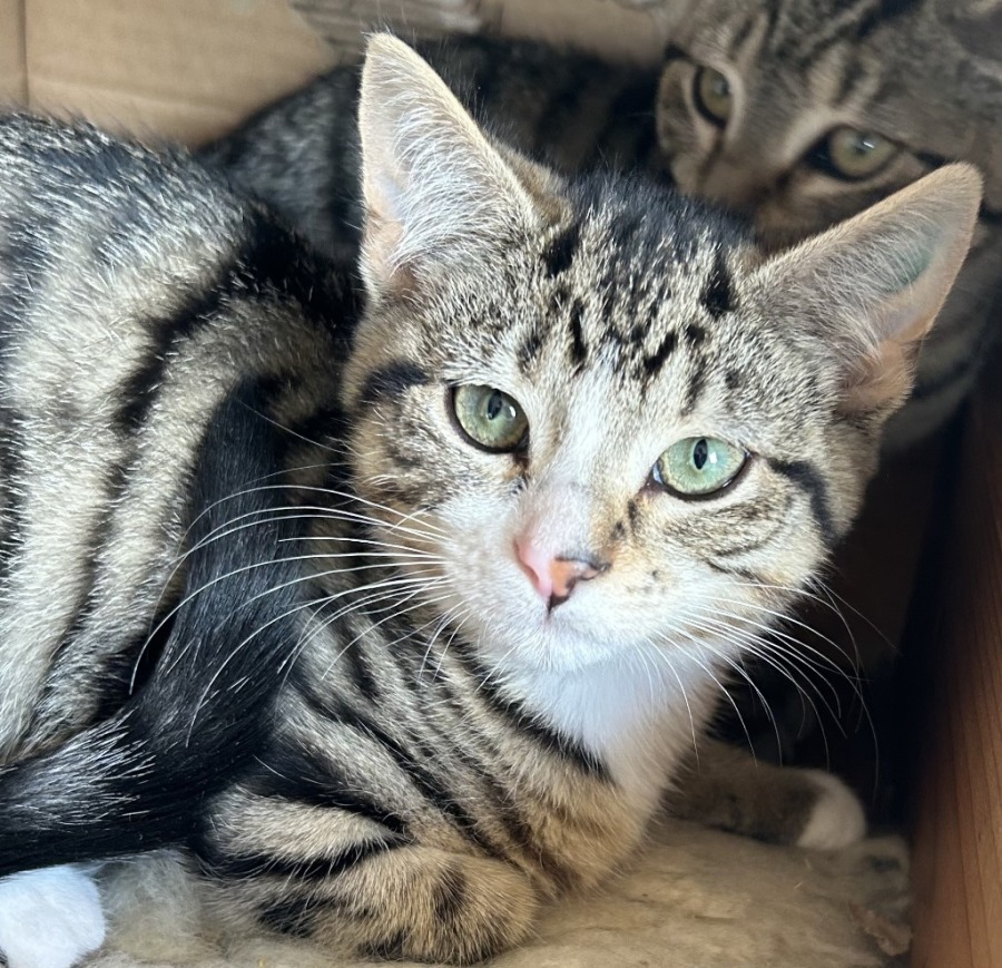 Introducing Tas-Nose, an adorable 14-week-old female tabby with a sweet and gentle disposition. While she may initially be a bit shy, she is sure to blossom in an environment filled with patience, understanding, and plenty of love. Her serene nature makes her a wonderful companion for those who appreciate a peaceful and calm presence in their home.