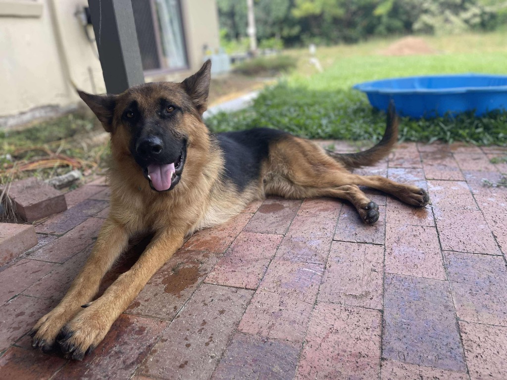 My foster parents named me Mowgli because I am a gentle soul with a big German Shepherd appearance. I love kids, and other dogs. I am unfazed by cats and just ignore them. I love to give kisses to everyone. My life has been very sheltered, so I do freak out over things but if something scares me, I do sit down and observe the situation calmly to make sure it’s safe. In the short amount of time my carer has had me, I have picked up sit already and learning to walk on leash as well as crate training.
