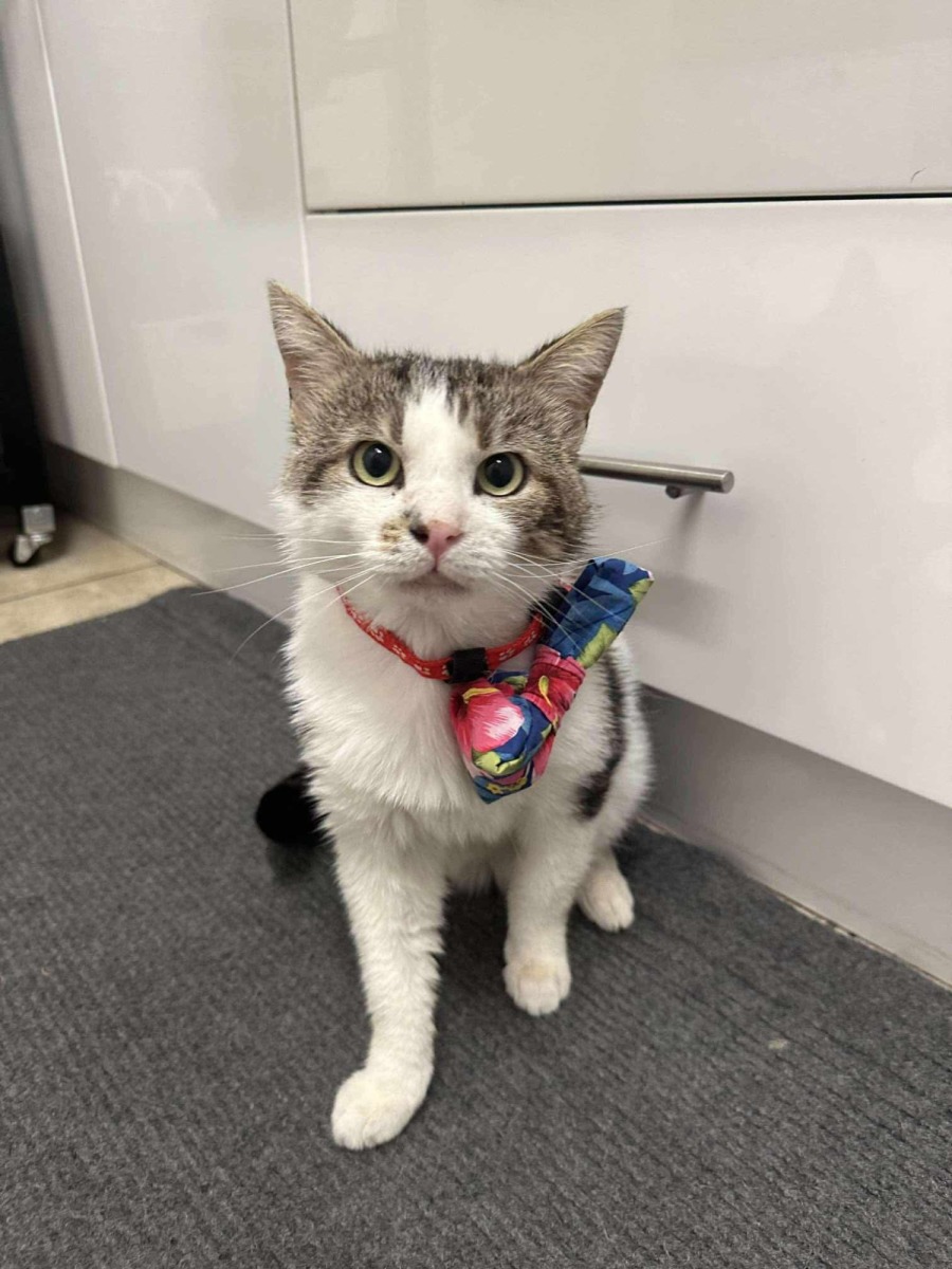 Looking for a feline best friend who’s equal parts cuddlebug and entertainer? Meet Mr. Worldwide, a 2-year-old tabby-and-white sensation who’s mastered the art of always being involved. Whether you’re folding laundry or binge-watching your favorite show, this guy is right there with you, ready to supervise every move.