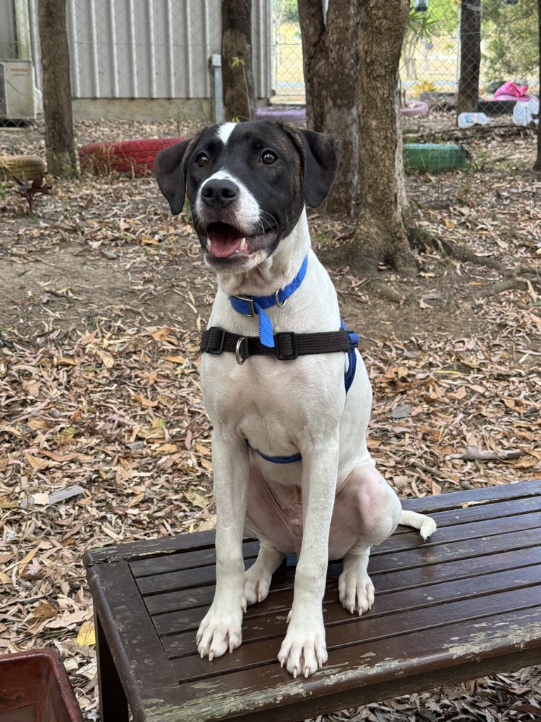 I came into shelter terrified with my brother chalkie. the love of staff, vollies and being with my brother has given me the confidence to show my true self I'm more the outgoing one of us two, once I get to know you, we'll be the best of friends. I love to play, especially with squeaky toys and running around the yard with my brother this is my favorite! I promise to always be gentle, even when we're having the most exciting game of tug-of-war. I might be young, but I'm full of love and loyalty. I'm looking for a forever home where I can share my playful spirit and gentle heart. Adopting me would mean endless cuddles, countless playtimes, and a loyal friend for life. I would love to be adopted with another doggy friend as I love having company and doggies to play with!