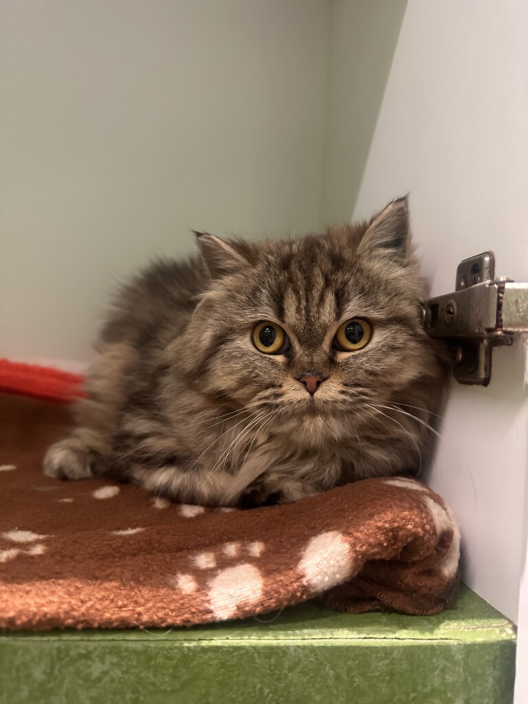 Edna is a young, gentle cat with a heart full of love. She is incredibly affectionate and enjoys spending time with her human friends. Her loving nature will make her a wonderful companion for anyone looking for a sweet and devoted cat. With her long, beautiful coat, Edna will need daily brushing to keep her fur looking its best. She's great at letting you pamper her with grooming sessions and enjoys the attention. Edna is a cat who likes to relax and would prefer a quiet adult home. It may take her a little while to settle in, but once comfortable she will show you her lovely personality.
