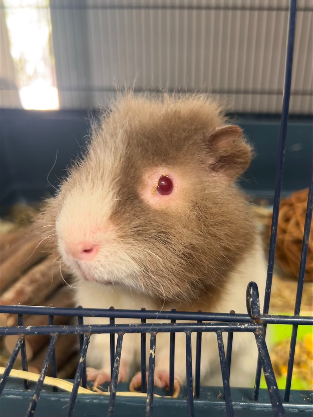 I am a very friendly guinea pig that is super outgoing and always ready for food and a chat! My favourite snack you might ask; It's apples! I am unique a pretty unique boy, and my looks definitely show it! I am looking for someone to spend my time with as I love hanging out with people and other animals. I also love sitting on top of my house to see what is going on.