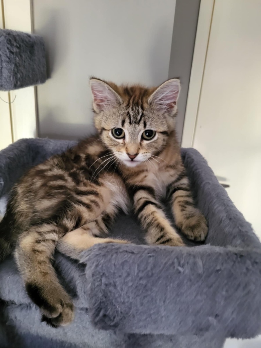 Introducing Moana, your soon-to-be feline companion whose striking tabby features and playful spirit are waiting to charm you. Currently residing at the Petstock Carrum Downs store, Moana is eager to find her new home. This charming Domestic Short Hair (DSH) female loves her toys, especially anything she can chase or hunt. Her independent streak means she treasures her personal space, but she does appreciate a pat and a smooch when she's ready for it. Born around September 6th, 2024, Moana is still young at heart and always up for some interactive playtime.
