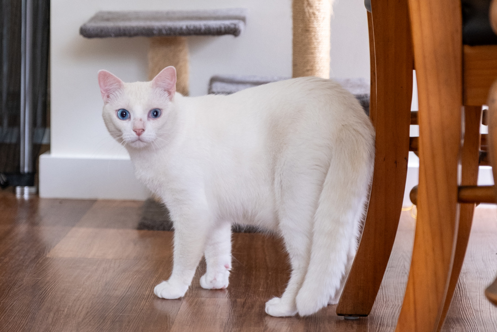 Please note Bear will need to be an inside cat for safety due to both his hearing impairment and his fair skin. Cats and kittens with light noses and/or ears are more susceptible to getting sunburnt, and in turn, getting skin cancer.