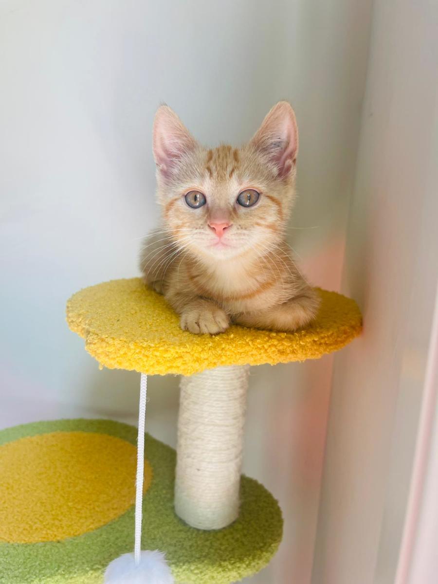 Introducing Allie, the playful ginger kitty who has a heart of gold and a knack for bringing a smile to your face. With her stunning ginger coat and gentle demeanor, Allie is sure to charm her way right into your heart. While she may be a little shy initially when meeting new people or other cats, patience and a gentle approach reveal her true spirited and friendly nature. Once Allie adjusts, you'll discover a loyal companion who will soon be everyone's best friend.