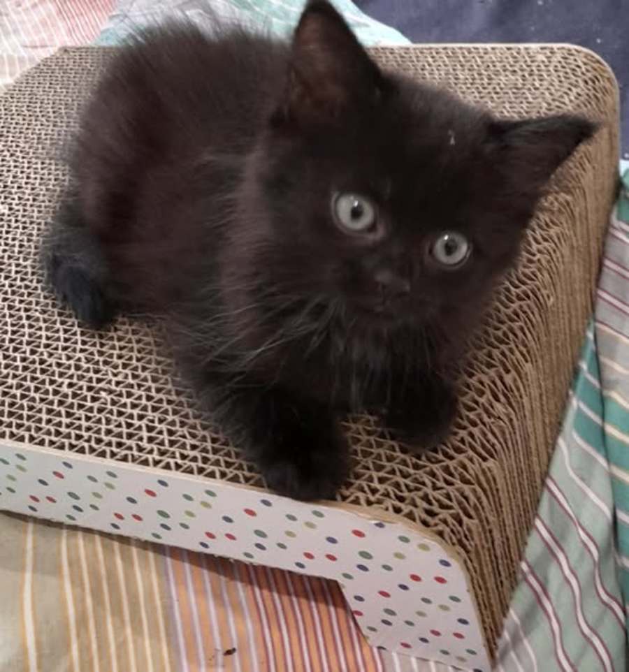 Richie is the runt of the litter. He loves people and the cuddles they give. He is a typical black kitten with his huge personality.