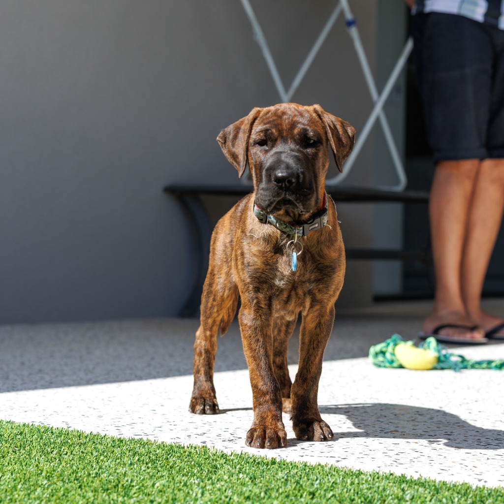 Meet Sage, our sun bear pup! Sage loves long naps and sunbaking. Equally she loves zooming with her sister, playing with squeaky toys and playing tug rope. Sage is a clever pup, already showing promise with toilet training and holding her bladder when needed in her crate. She is food motivated, so training with treats is a breeze! Sage can be shy when first meeting new people and will need a loving home, happy to go slow when building a bond and exploring the world. Sage is young and will need positive introductions to people, places and other animals to ensure she thrives. She is confident with her sister and would be good with a companion provided she feels secure and can slowly meet any other dogs at home.
