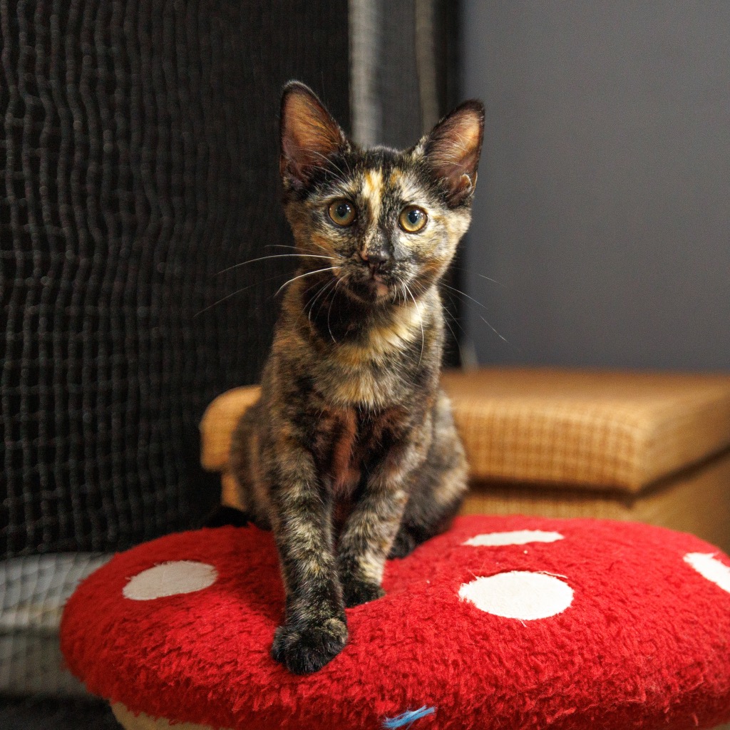 This cheeky little kitten is definitely the queen of the castle! She adores lots of attention, including plenty snuggles, scratches and endless playtime! She’s super confident, so she’d be great with a family, or even a cat social dog. She is just waiting for her chance to steal the throne in your home!
