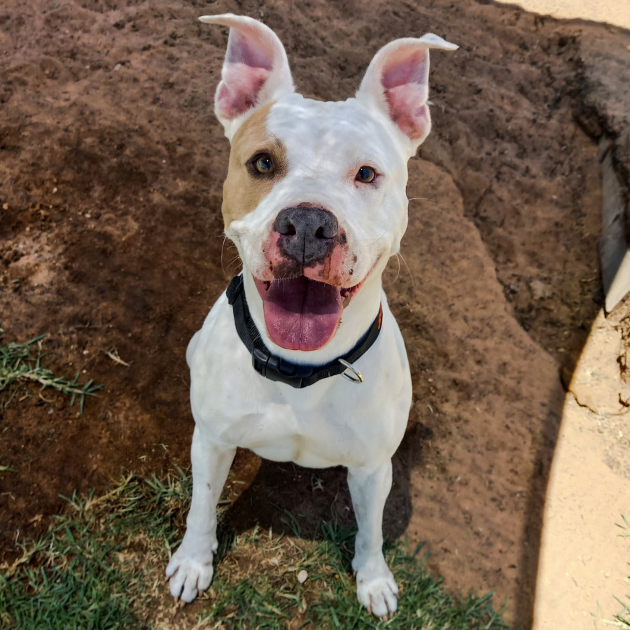 While not dog social, she walks well on lead, and is easy to redirect when distracted. She would benefit from a new family that will continue the training she loves so much. This young lady has so much potential!
