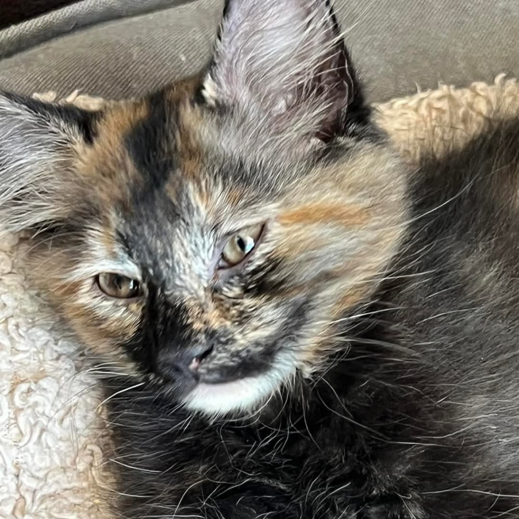 Sweet little Walnut. This girl is a beautiful, gentle girl; playful and inquisitive. She is always looking for company and a snuggle.