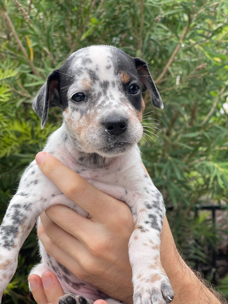 Misty is a gorgeous white pup with adorable brown and black spots, and she’s the littlest one of the litter – but don’t let her size fool you!