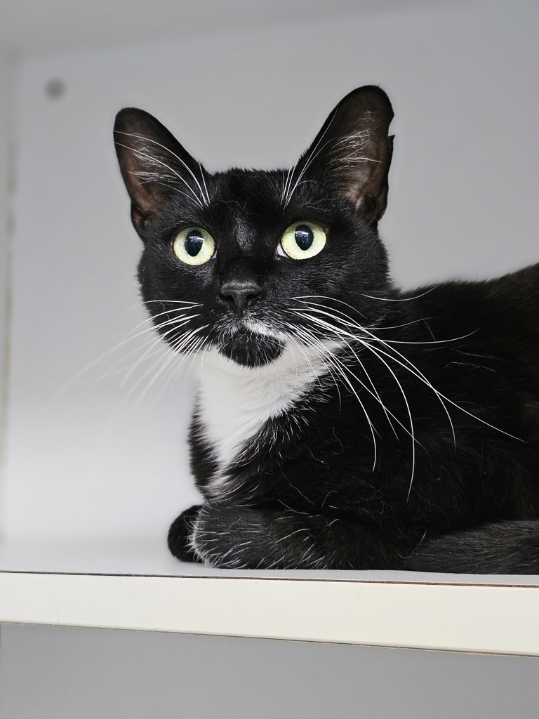 Minnie is a striking black and white beauty with a heart as sweet as her name. This gentle soul thrives in a peaceful environment where she can share slow, quiet moments of affection with her favourite humans. Lean in for a head scratch, and you'll win her over in no time - it's her favourite way to bond!