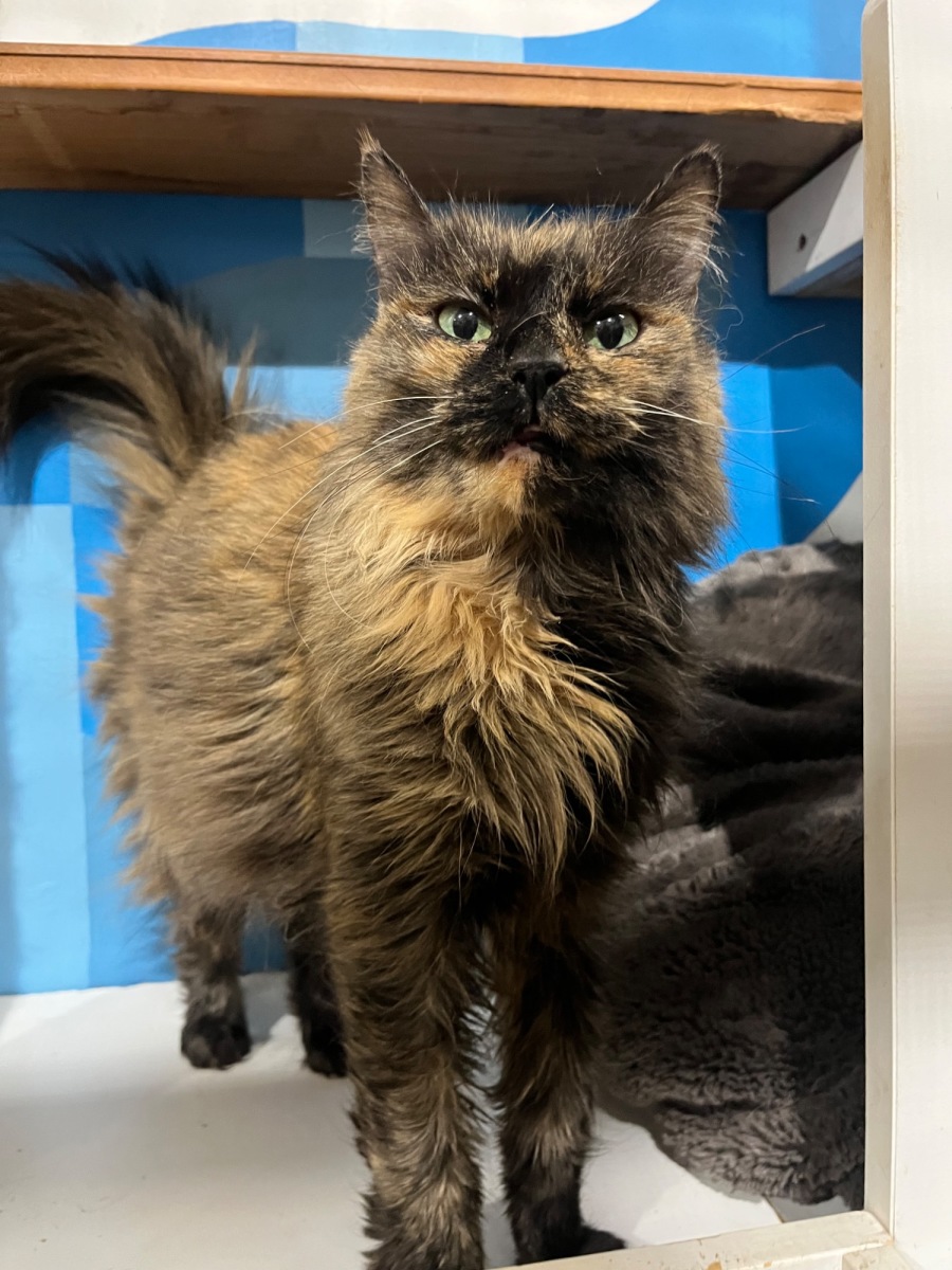 I am a sweet, gorgeous senior lady who enjoys some attention. I enjoy a few head pats and will happily follow you around and hang out. I also like to be a little independent and will enjoy a home to live out my golden years.